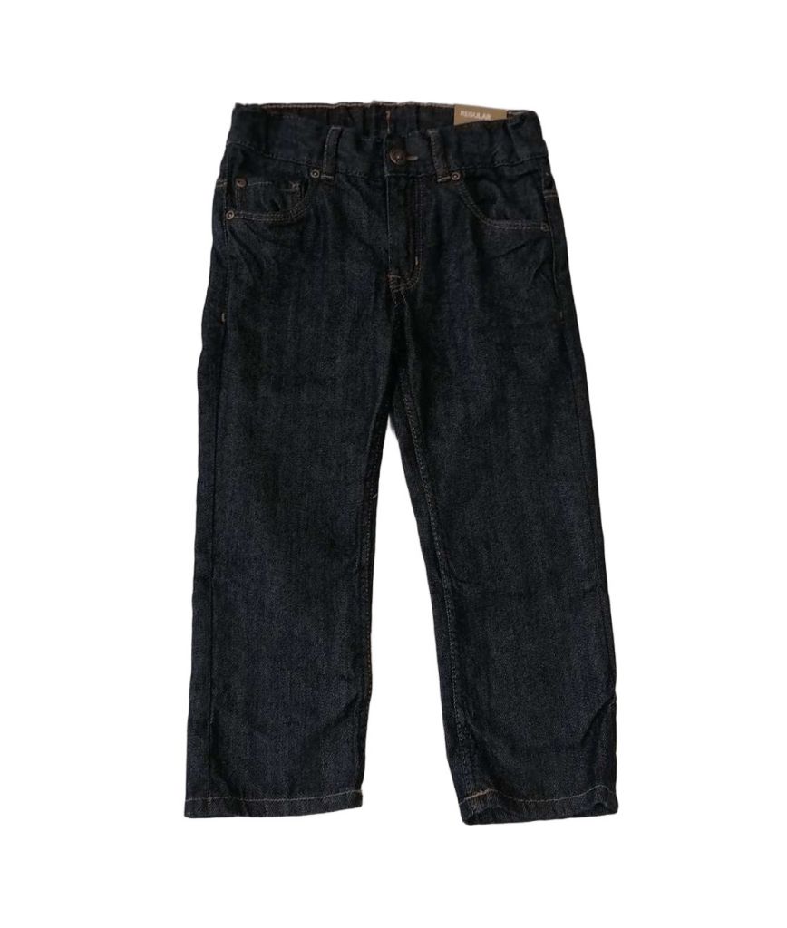 WHMM1171Дънките са с класическа линия, от тъмен тънък деним, с кафяв декоративен конец на шевовете и тик-так копче в цвят патина. Имат вътрешен ластик за допълнително регулиране на талията.Марка: H&MСъстав: 100% памук