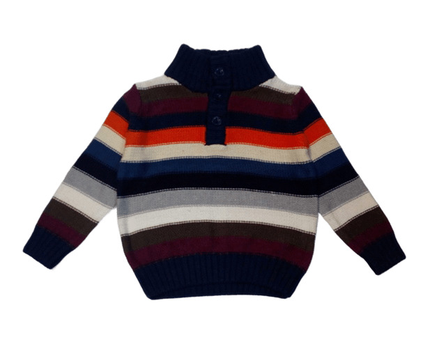 WWM950Плетен пуловер на широки ивици в тъмносиньо, бежово, оранжево, кафяво, сиво, бяло и бордо. Пуловерът е с висока яка. Закопчава се с три копчета отпред.Марка: MinotiСъстав: 92% памук, 8% акрил
