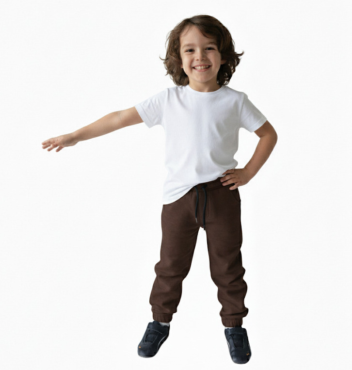 Долнището е от тънко трико в кафяв цвят. Има два джоба и шнур за регулиране на талията.