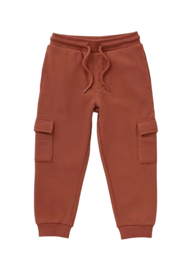 Долнището е от ватирано трико в керемиден цвят. Има два горни джоба и два странични карго джоба с капаче. Талията се регулира с шнур.