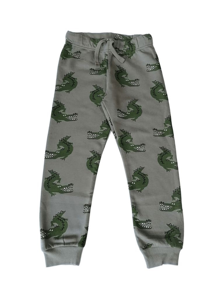 DHM1267-2Долнището е леко ватирано, в светъл масленозелен цвят, с изображения на зелени крокодили.Марка: H&MСъстав: 80% памук, 20% полиестер