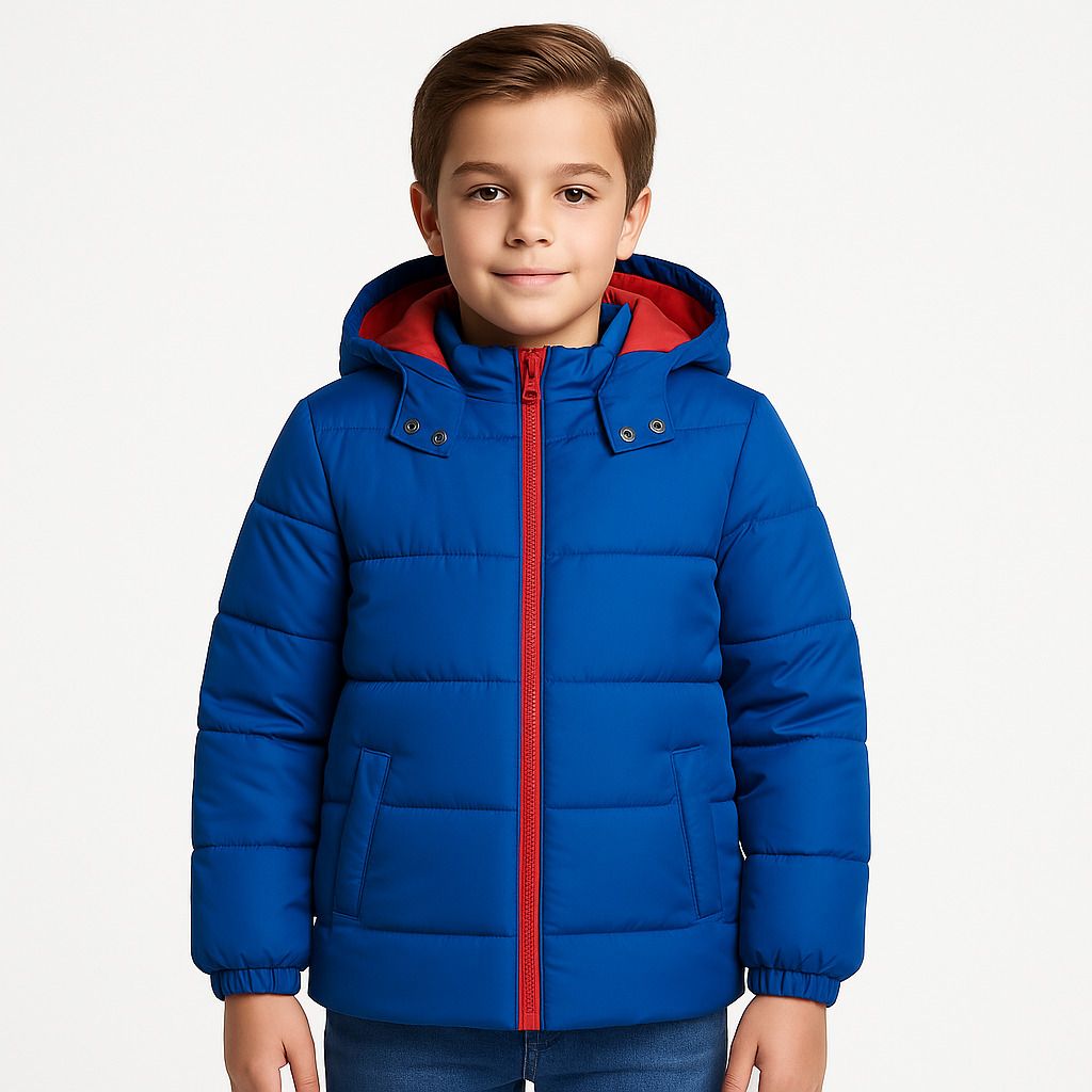 GMT666Дебело зимно яке от серията URBAN BOYS. Якето е в тъмносин цвят, с качулка и два джоба. Ципът и подплатата са червени, а вътрешността е от пресована вата.Марка: MatalanСъстав: 100% полиестер