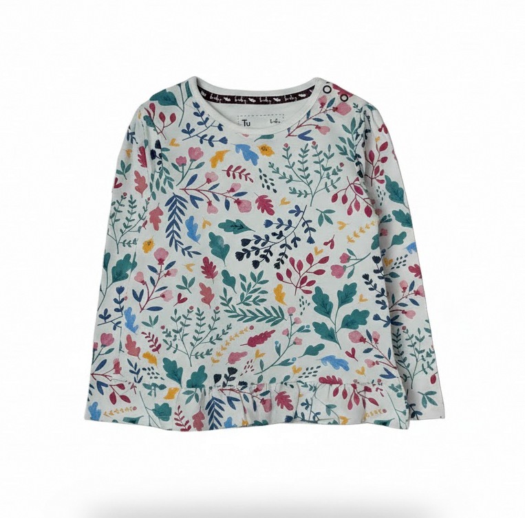 GTU1123-1Бяла блузка с дълъг ръкав и пъстроцветни изображения на листа и клонки.Марка: TUСъстав: 100% памук