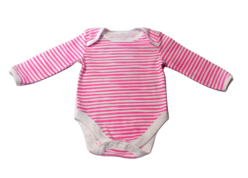 GE9004-3Бодито е бяло, с дълъг ръкав и райе в наситено розово. Има три тик-так копчета за закопчаване отдолу.Марка: GeorgeСъстав: 100% памук