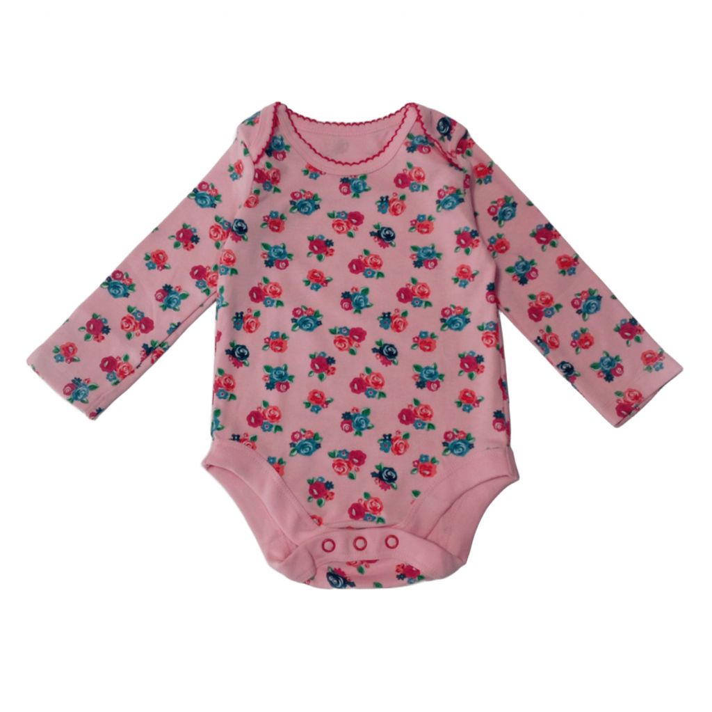 GAL6011Бодито е с дълъг ръкав в светлорозово и дребни изображения на рози в синьо, оранжево и цикламено. Около деколтето е обточено с нежна памучна дантела в цикламен цвят.Марка: TUСъстав: 100% памук