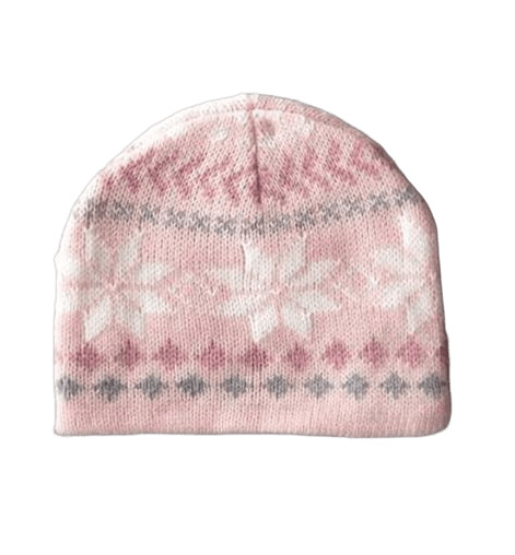 GPK516-1Плетена шапка в бледорозов цвят с изображения на снежинки и геомерични фигури в бяло, сиво и пепел от рози.Универсален размер: 2-6 годиниМарка: PrimarkСъстав: 100% акрил